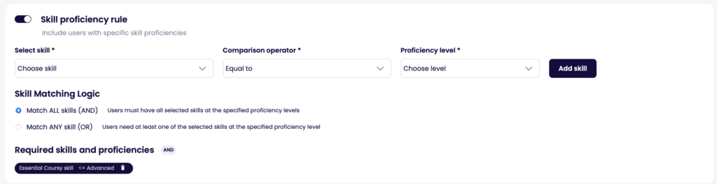 - Select the proficiency level you want to use with the selected skill and comparison operator